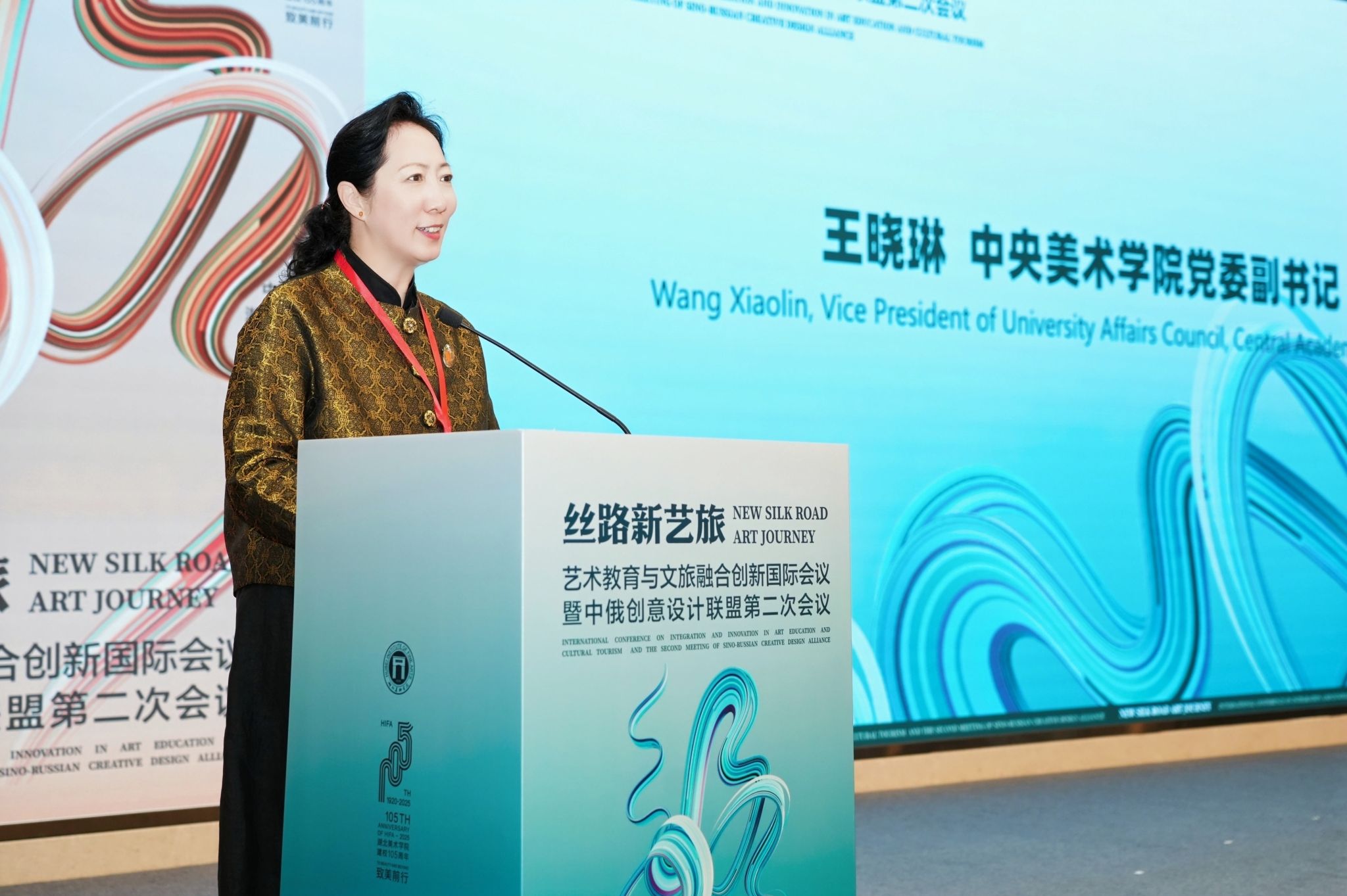 王晓琳代表中俄创意设计联盟成员代表致辞。她说,⼀年来,联盟已成为连接中俄两国创意⼒量的重要桥梁,为两国在设计教育、创意产业等领域的深度合作注⼊了新的活⼒。她期待联盟能进一步深化合作,携⼿开拓艺术赋能⽂旅的新路径,成为推动⽂明互鉴的重要阵地。