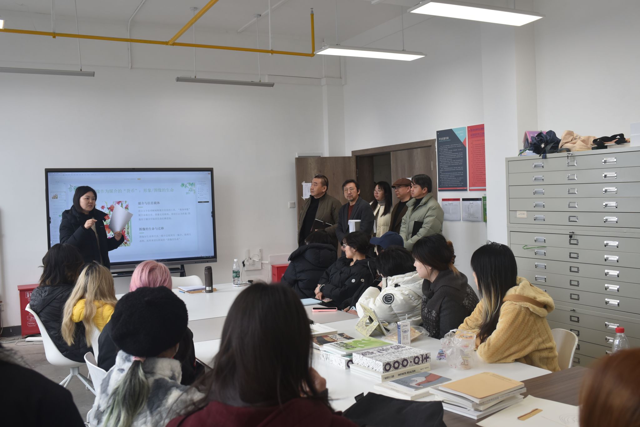 检查组一行先后走访跨媒体艺术系、实验绘画系的专业教室、数字影像实验室、综合材料工作室,实地查看教学设备调试、课程大纲准备、教学环境布置等情况。在COS—J 跨媒介艺术实验教学平台,张炼副校长详细了解平台的技术更新与教学应用,在社群美育实验室,检查组观摩了学生社会实践项目的前期筹备,针对实验绘画系的综合材料课程准备,张炼副校长指出:“实验艺术的核心在于创新,要持续优化课程内容,让学生在传统与当代的碰撞中探索艺术边界。”