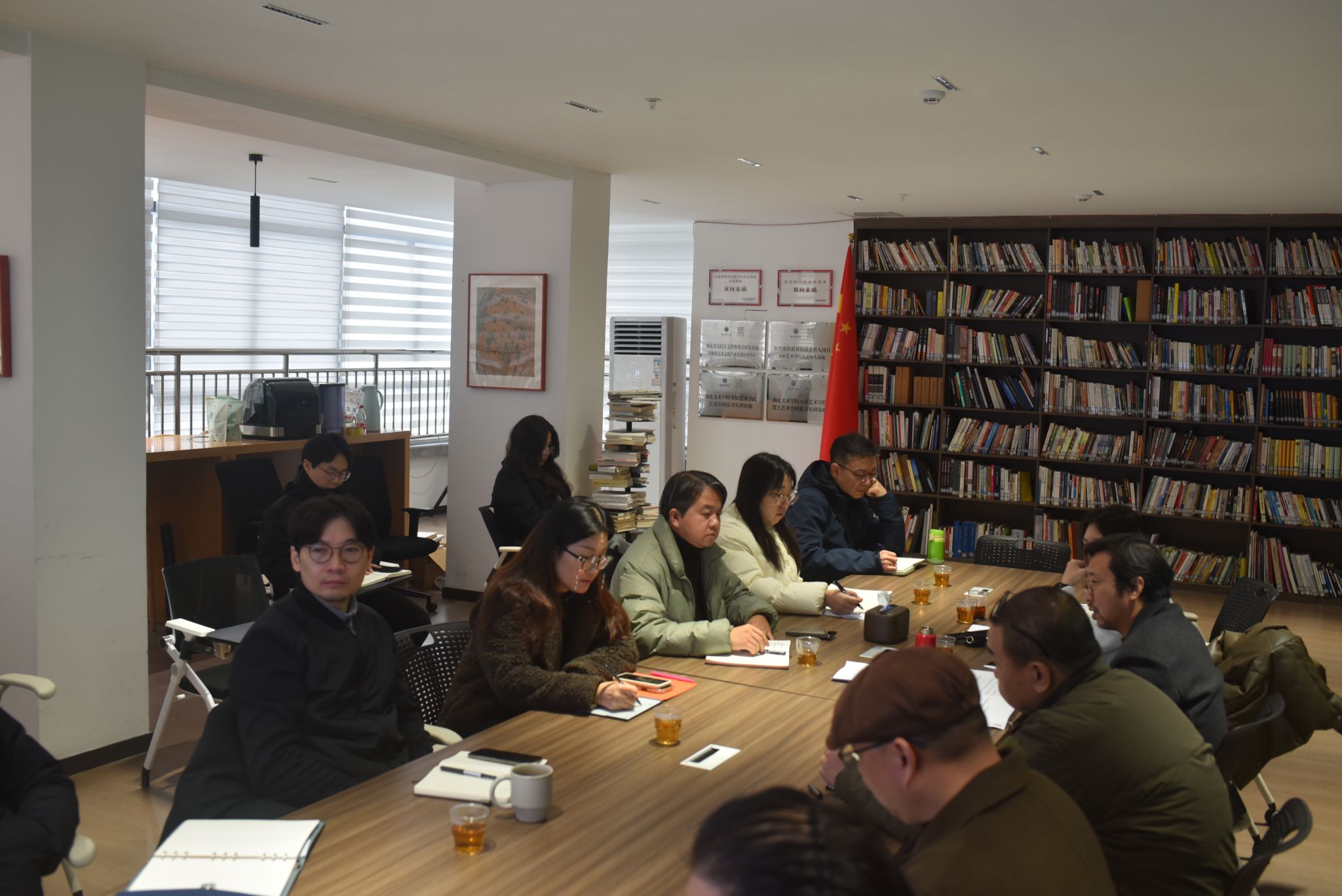 检查结束后,张炼副校长组织学院领导班子专题学习《关于在全党开展树立和践行正确政绩观学习教育的通知》,强调要深刻领会“立党为公、为民造福、科学决策、真抓实干”十六字总要求,并结合学院教学工作提出指导意见。他指出,实验艺术学院作为湖北美术学院最具创新活力的教学单位之一,要以树立和践行正确政绩观为引领,聚焦 “立德树人” 根本任务,把为民造福的理念贯穿人才培养全过程:一是要科学决策教学改革方向,结合跨媒体艺术、实验绘画的学科特色优化课程体系,避免形式主义;二是要真抓实干推进教学资源整合,发挥 COS—J 平台等教学载体的辐射作用,切实提升教学质量;三是要将政绩观教育融入师资队伍建设,引导教师以“培养具有实验精神、创新能力和社会责任感的当代艺术人才”为核心政绩,摒弃急功近利的短视行为。
