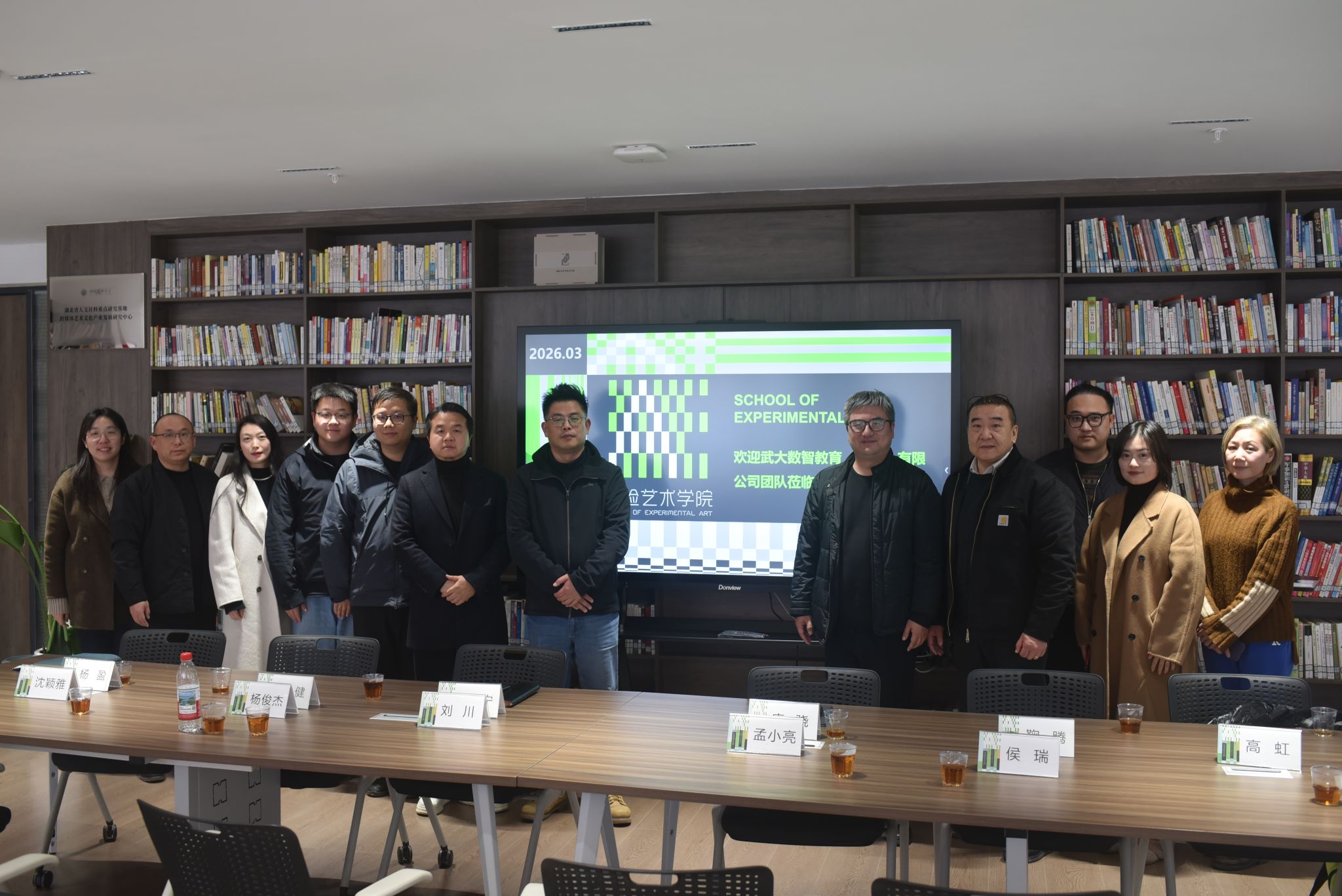 为深入贯彻国家文化数字化战略,推动实验艺术与数字科技的跨学科融合,探索艺术教育数字化转型与产教协同发展新路径,2026 年 3 月 19 日,湖北美术学院实验艺术学院与武汉大学数智教育(武汉)有限公司在昙华林校区开展数字教育与跨学科合作调研交流会议。学院党委书记李宁、院长唐骁携领导班子及各系部负责人出席会议,与数智公司执行董事兼总经理孟小亮带领的团队围绕课程数字化建设、数字孪生领域合作、展览策划与社会服务等方面展开深入研讨,达成多项重要合作共识,为学院高质量发展注入数字动能。