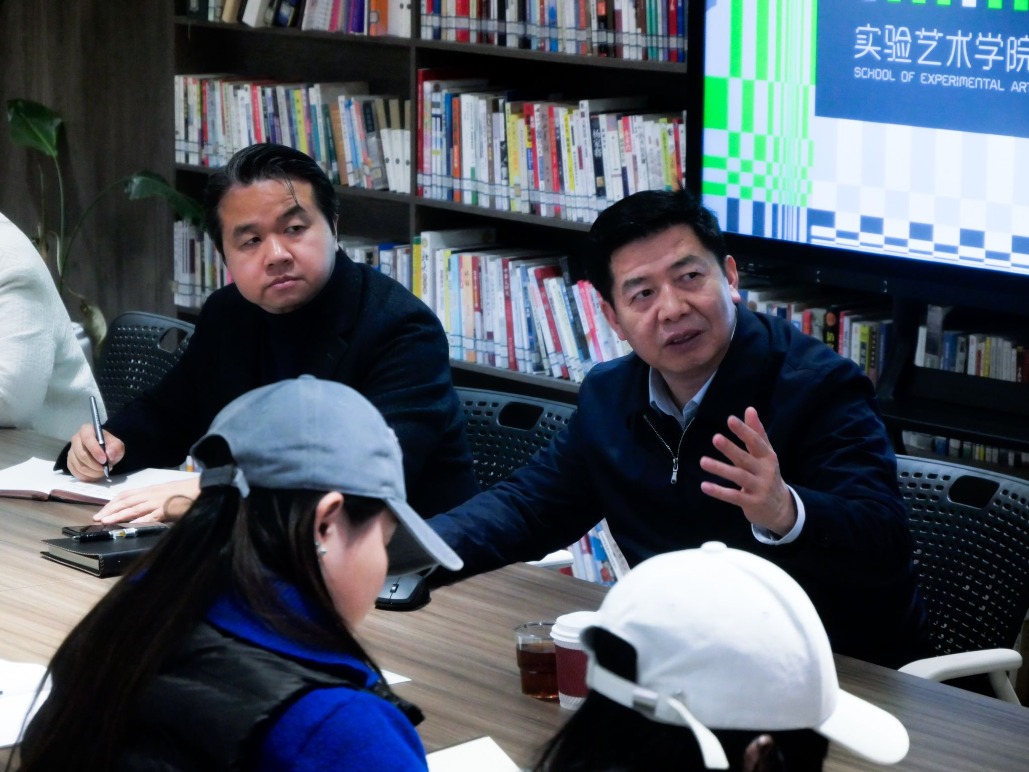 3 月 24 日下午3点30分,湖北美术学院副校长程智力在201会议室以《数智赋能荆楚文化遗产活态传承》为主题,为学院师生带来了一堂生动深刻的 “开学第一课”。实验艺术学院党委书记李宁、副书记杨盈及学生代表共同参与了本次学习活动。
